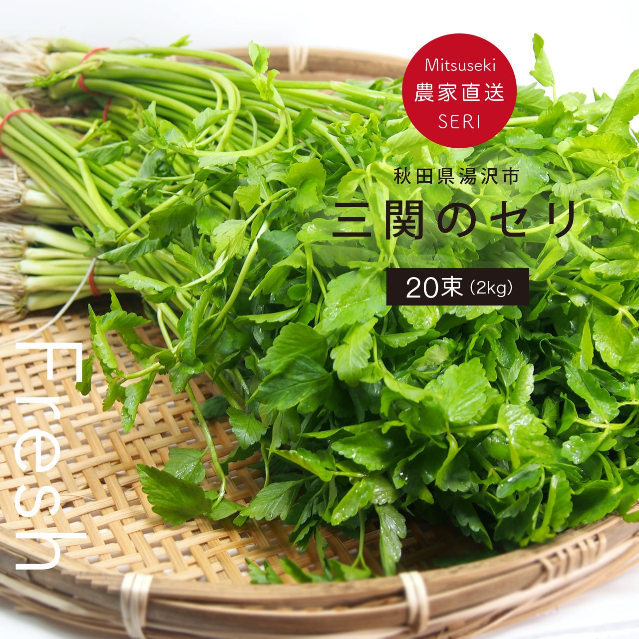 秋田県の南に位置する湯沢市三関で育ったセリは、セリ本来の甘みと立派な根っこが特徴です。特に極寒の冬場に雪深いハウスで育ったセリは立派な根を蓄え「三関のセリ」と呼ばれ、地元ブランドとして根付いています。